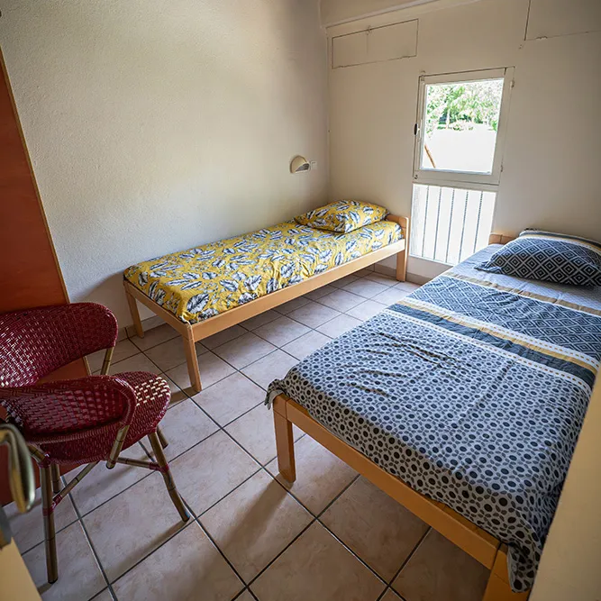 • Une seconde chambre avec soit deux lits simples (80×190), soit 2 lits superposés et un lit simple, soit 2 x 2 lits superposés.
